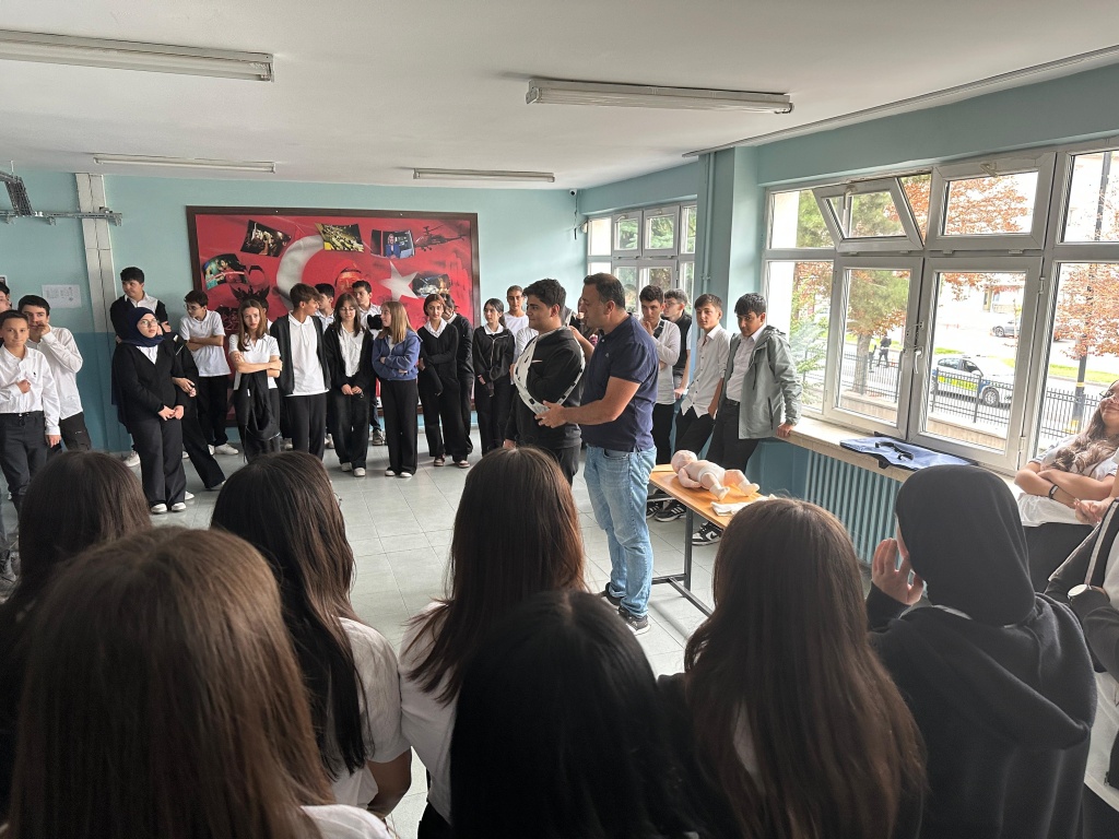 Eğitimde öğrencilerimize, acil durumlarda nasıl doğru ve bilinçli davranacakları anlatıldı. Kanamayı durdurma, kırık-çıkık durumlarında yapılması gerekenler, Heimlich manevrası ve temel yaşam desteği (CPR) gibi konularda teorik bilgilerin yanı sıra pratik uygulamalı gösterimler de yapıldı. Yusuf Arslan, ilk yardımın sadece bir bilgi değil, aynı zamanda doğru zamanda doğru müdahaleyi yapma cesareti olduğunu vurguladı.